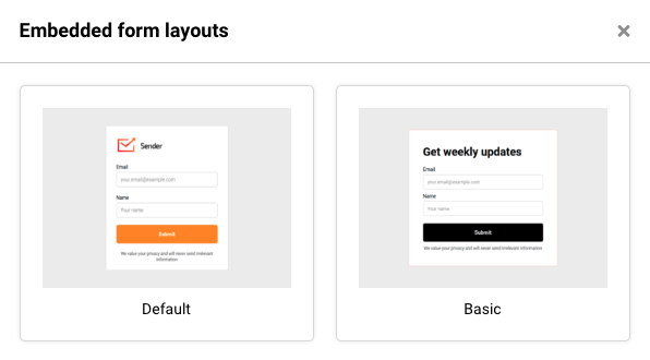 Choose from between the “Default” and “Basic” templates. These layouts primarily differ by structure.