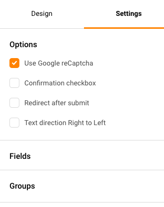 The main difference between popup and embedded form design is that since the latter is pretty much required to be embedded, the form editor does not give you an option to optimize its behavior — only ‘Design’ and ‘Settings’ tabs are made available.