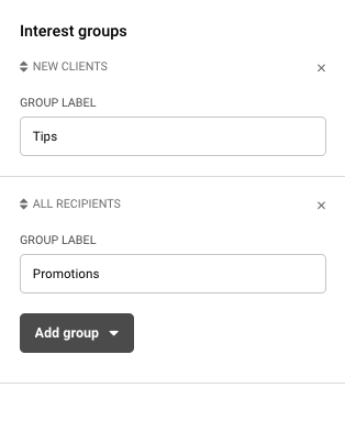 Interest groups are used let subscribers decide what type of content they might be interested in. They can do so by ticking a box in the form.