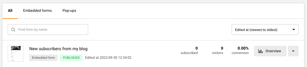 Note – you don’t need to re-implement the subscription form after any applied modifications. It will be automatically updated after being saved.