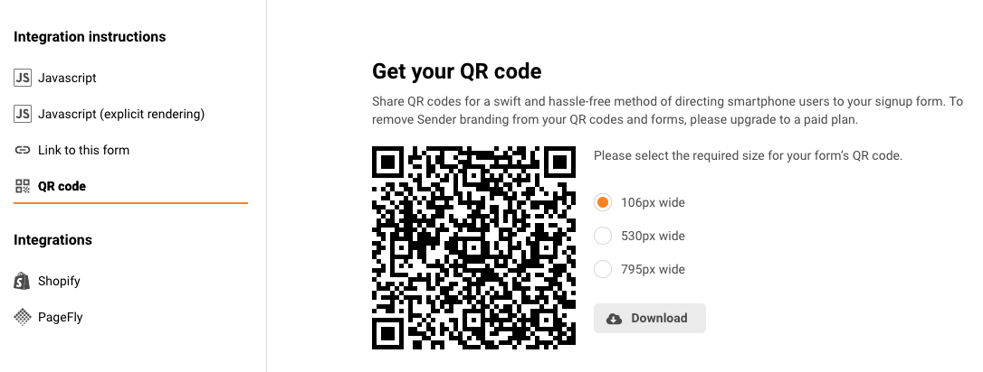If you want to remove the Sender branding from your QR codes and forms, you can do that by upgrading to any paid plan.