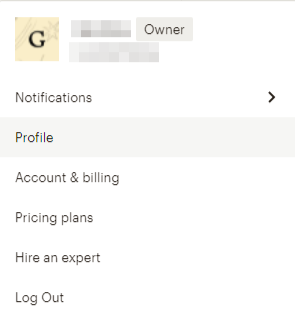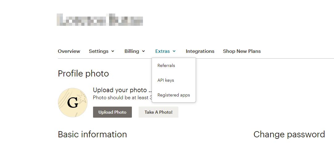 Log into your Mailchimp account. Go to the bottom left corner, click on your title picture and choose “Profile”