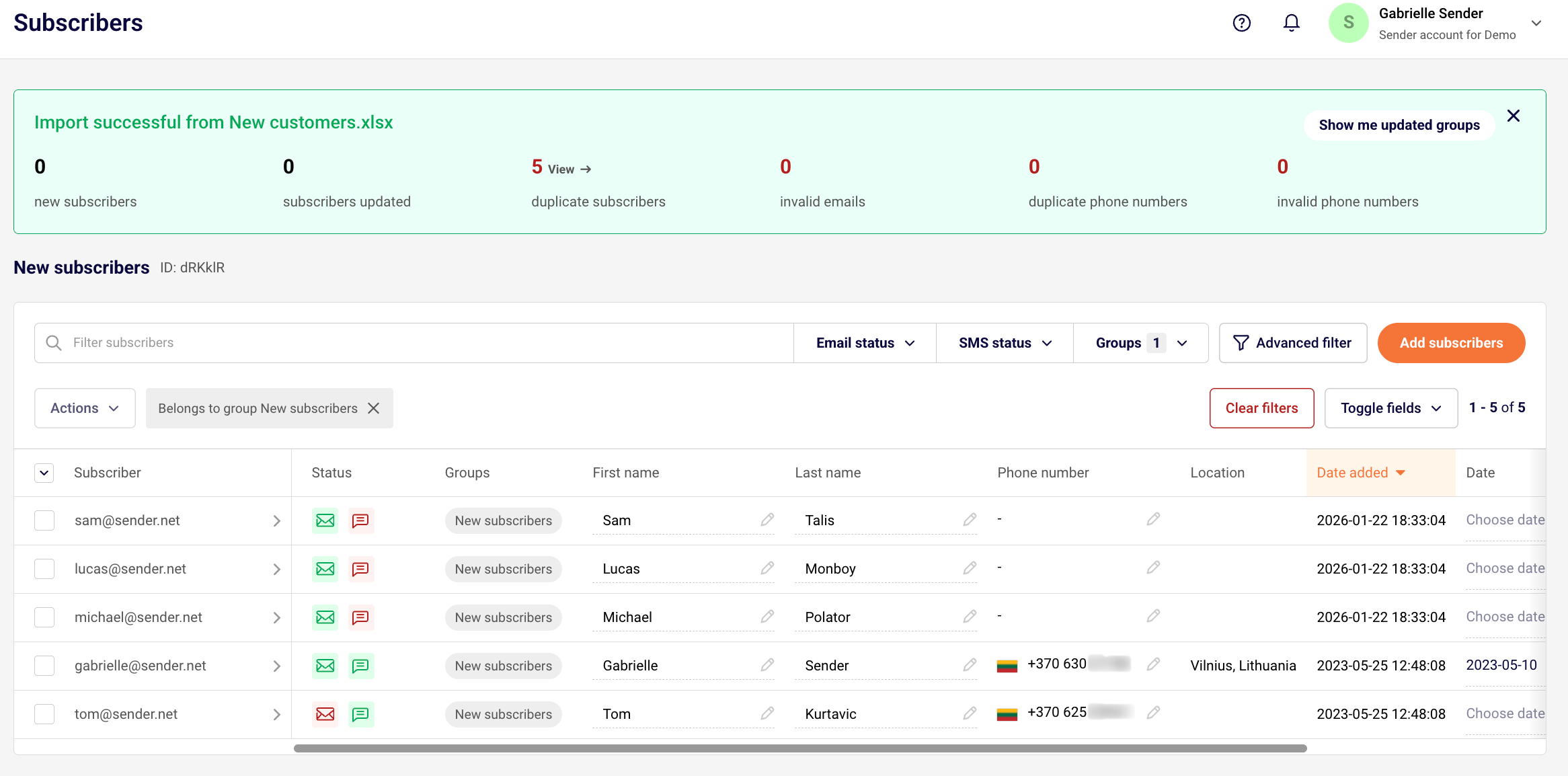 Selecting recipients for email and SMS campaigns has to be done by choosing groups, segments or all active subscribers, therefore we suggest making sure that each subscriber belongs to at least one group to make it easier for yourself in the future.