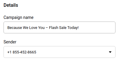 Settings is where the editing of the SMS campaign is done. This stage contains: