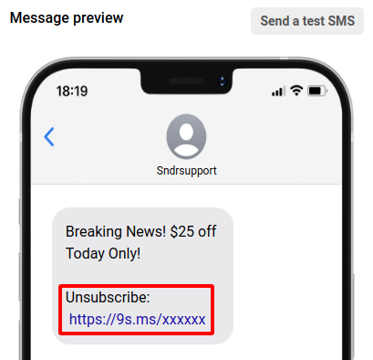 The preview of the SMS campaign and the option to Add Opt-Out instructions: