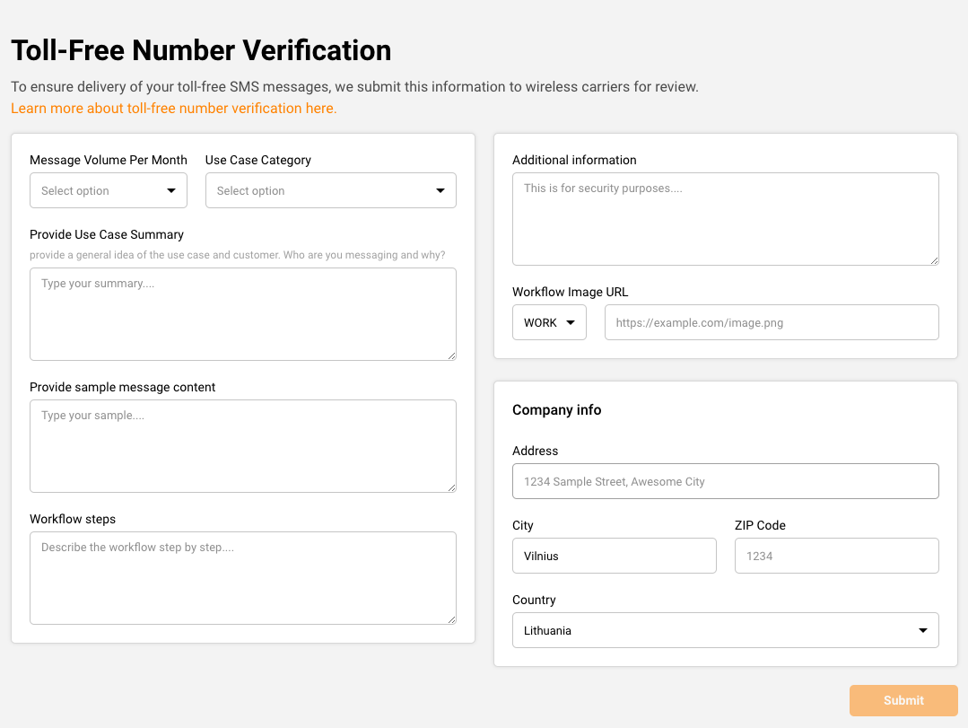 - Additional information – include any additional relevant information for the toll-free number verification.