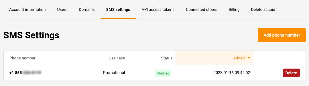 Once the toll-free number is verified, you will receive a notification, the status in SMS settings will change to “Verified”. This means you can start sending SMS to your subscribers.