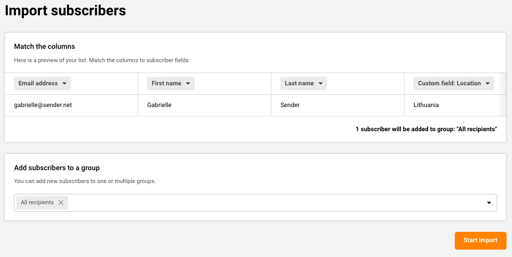 After that, simply click “Start import” and wait till the subscriber appears in your list.