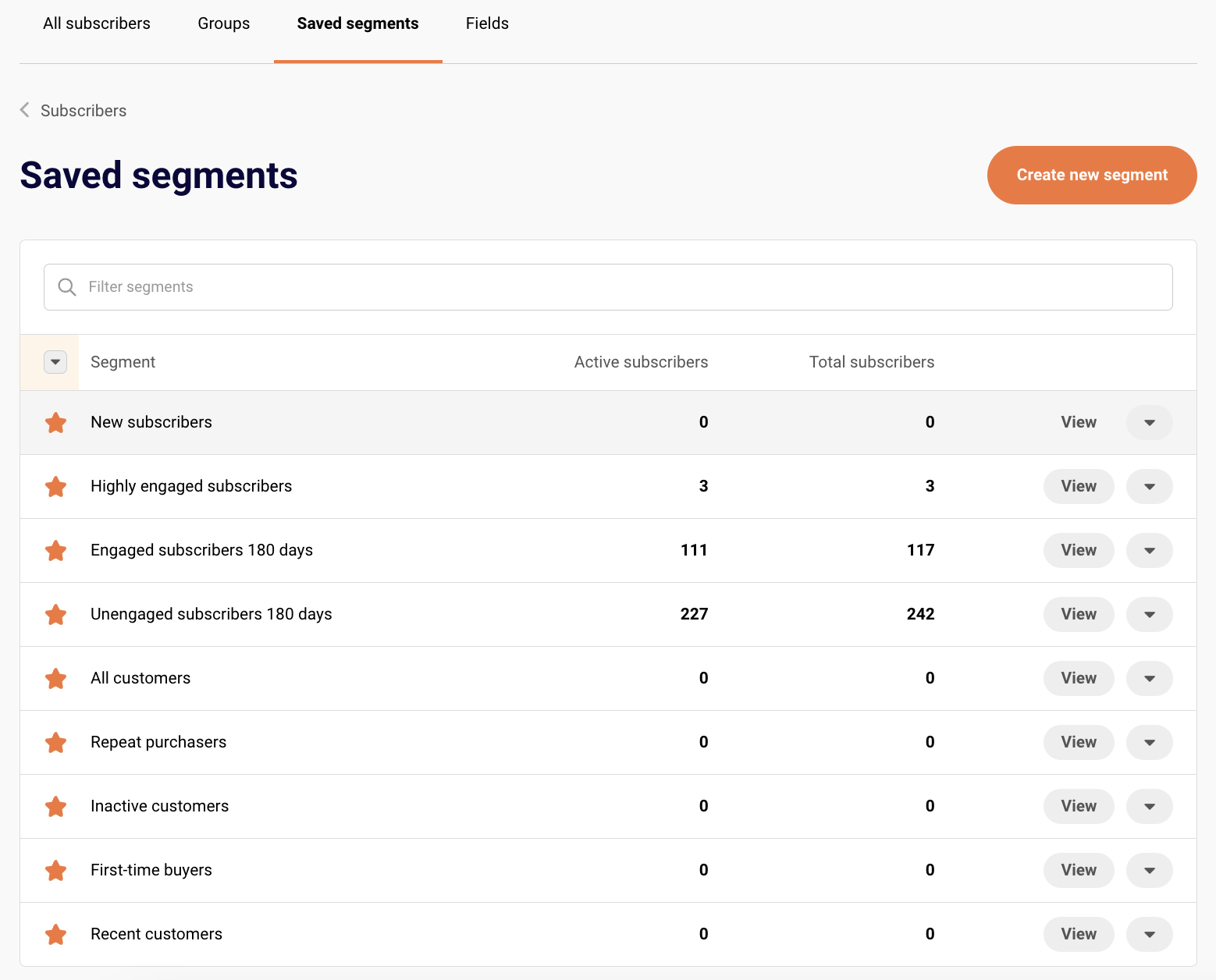 Paid customers can now use premade segments based on subscriber activity, engagement, and e-commerce behavior. These ready-to-use segments save time and enhance your campaign targeting.