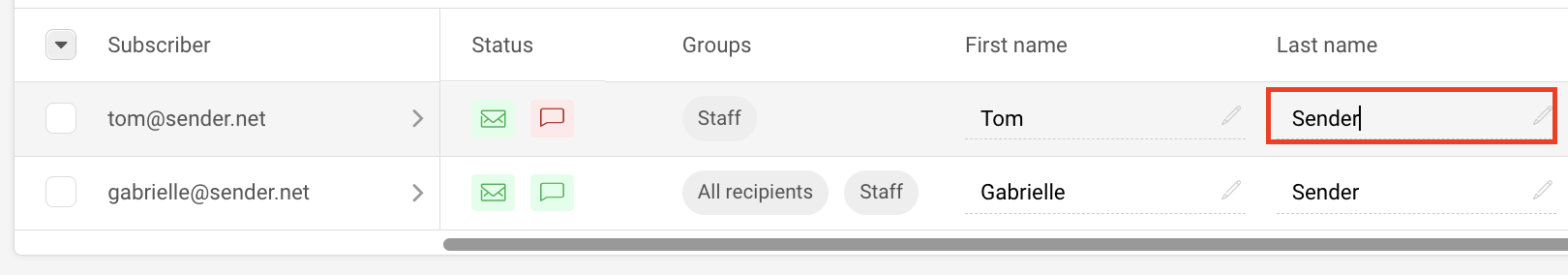 The subscribers’ management system is even more user-friendly and convenient. From now on, you can change the recipient’s custom fields in the same window. Click on the field and start typing.