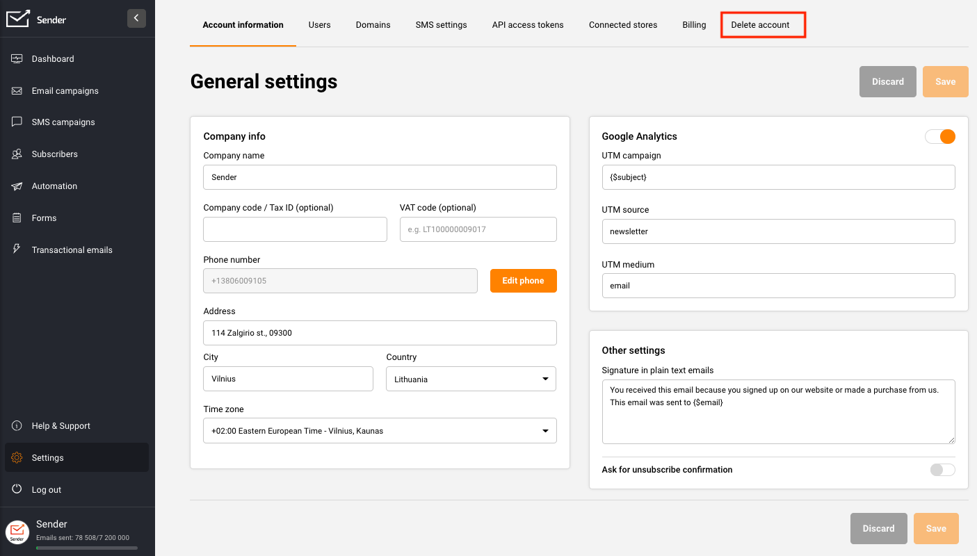 Delete Sender account