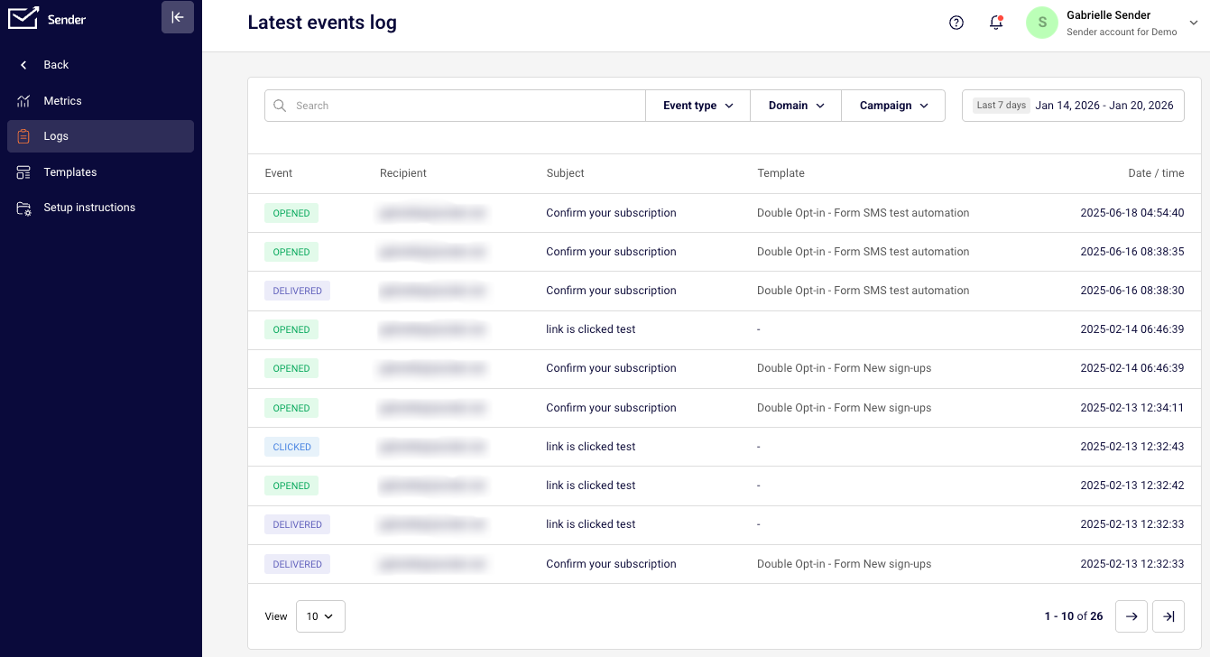 You can also search for a log by email address, the sender’s domain and campaign name.