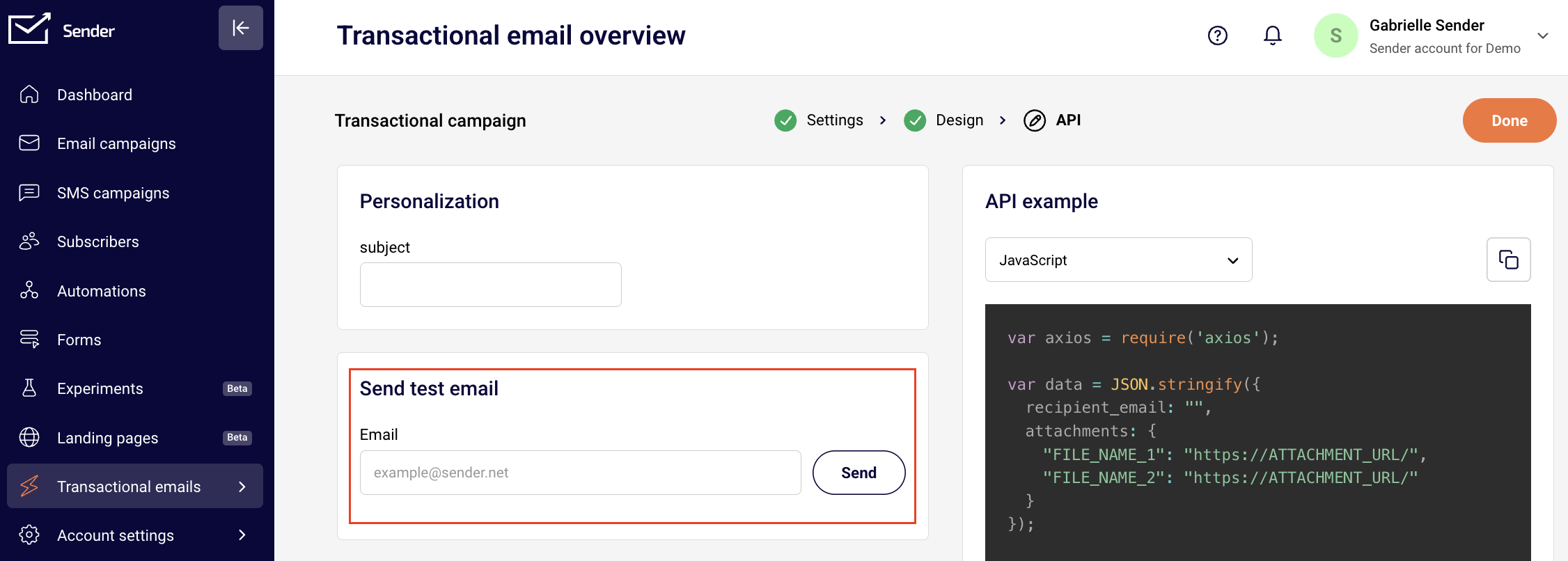 API allows you to send transactional emails programmatically. We support multiple programming languages and provide ready-to-use code examples.